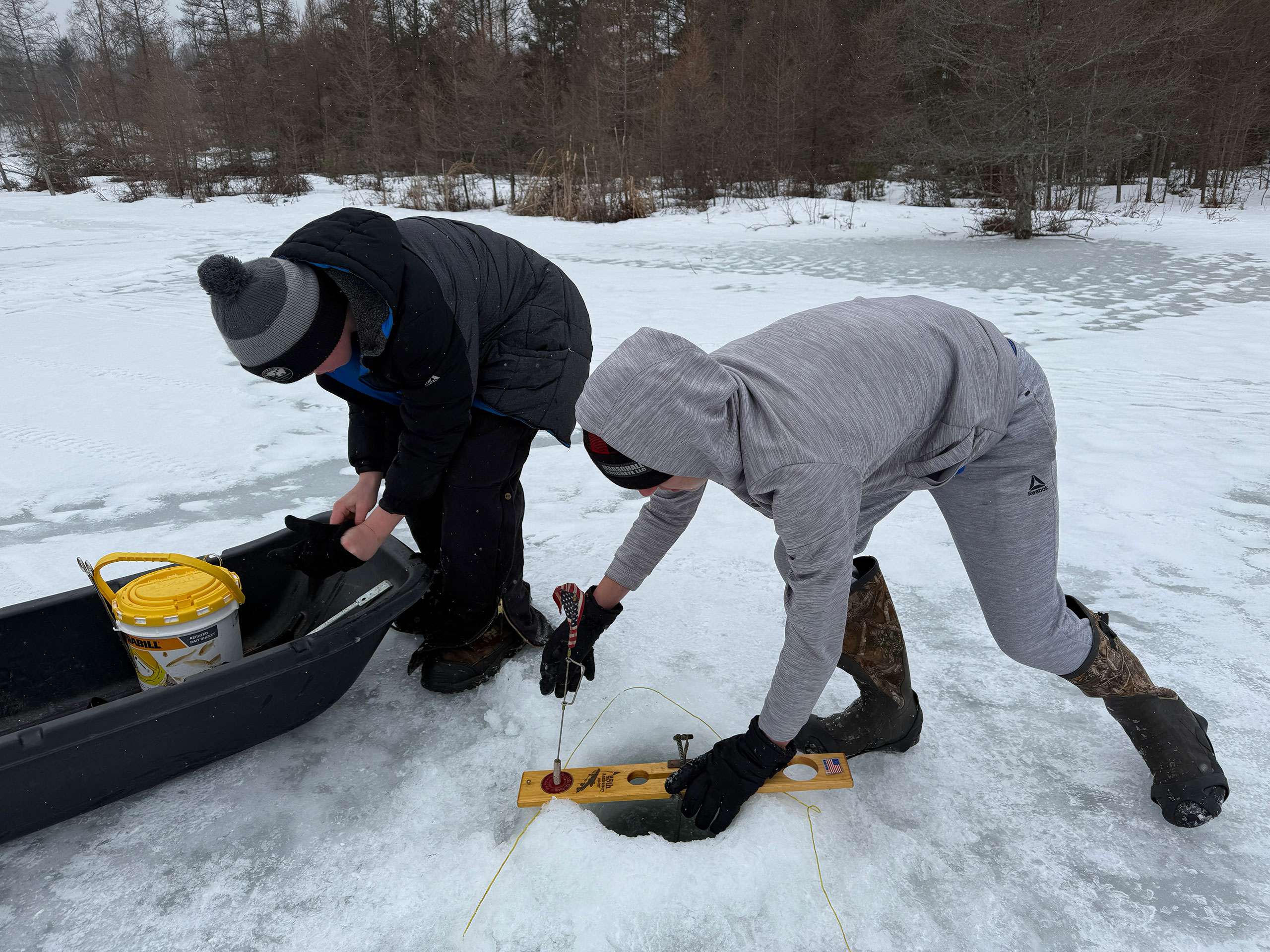 In addition to ice fishing, youth had the opportunity to learn and play Snow Snake, a traditional Ojibwe winter game that historically helped teach hunting skills for squirrel and grouse. Over time, Snow Snake became a competitive sport among Ojibwe communities.