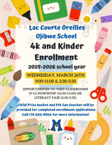 We, the Anishinabeg, the people of Odaawaa-Zaaga’iganiing, the Lac Courte Oreilles Band, will sustain our heritage, preserving our past, strengthening our present, and embracing our future. We will defend our inherent sovereign rights and safeguard Mother Earth. We will provide for the educational, health, social welfare, and economic stability of the present and future generations.