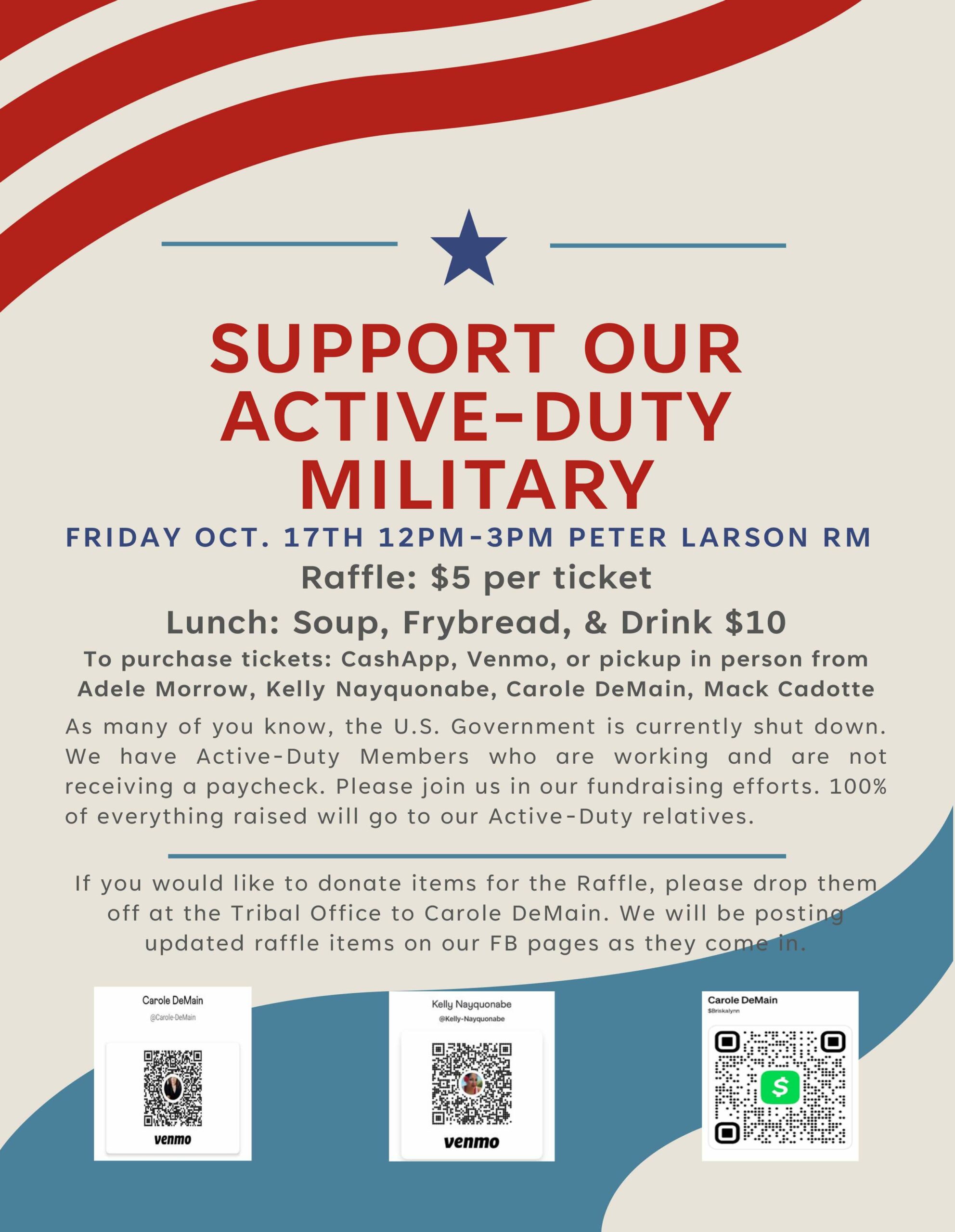 Oct 17 12:00 pm - 3:00 pm Support Our Active-Duty Military Fundraiser Fundraisers LCO Tribal Administration Building 13394 W Trepania Road, Hayward Event Details Get Directions