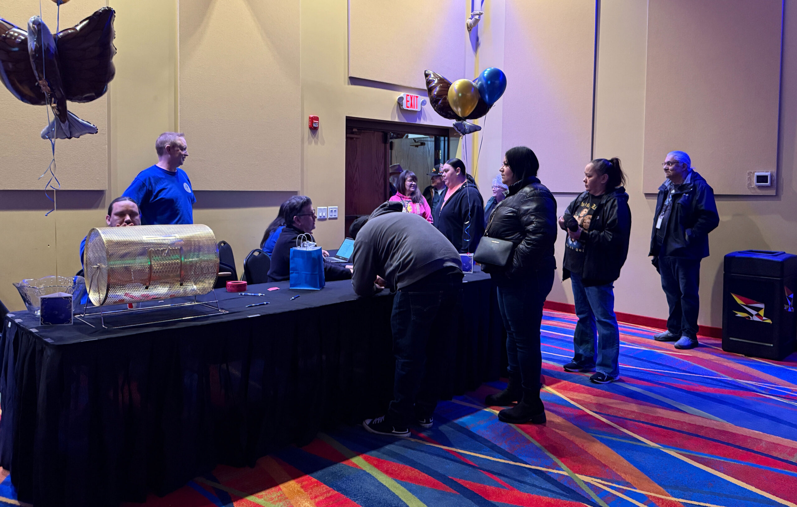 Midway through the evening, guests were treated to a meal before honoring past graduates. Gifts presented to past graduates included eagle feathers, handmade wooden plaques created by the school’s woodworking class, wild rice, maple syrup, and gift bags.